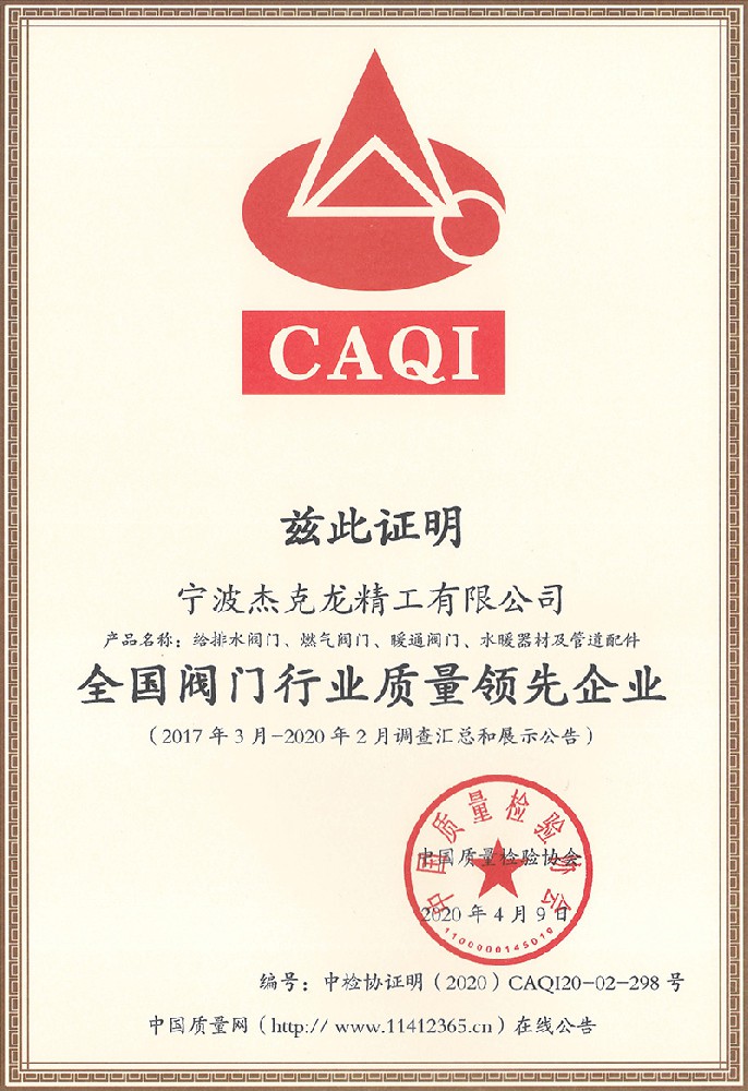 全國(guó)閥門行業(yè)質(zhì)量領(lǐng)先企業(yè)